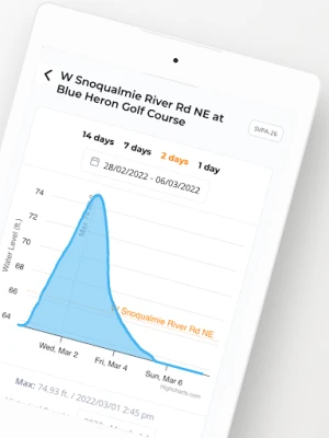 Floodzilla provides real-time flood information for the Snoqualmie Valley, including: