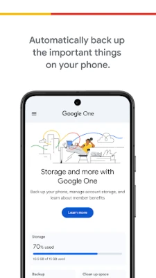 The Google One app lets you automatically back up your phone and manage your Google cloud storage.