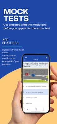 The app includes a practice module that allows to get familiar with questions that fall under different categories like Traffic Rules, Road Signs and Rules of Safe driving. It also keeps track of the progress you have made in each category. It contains questions from following categories: