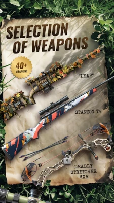 Unlike traditional shooting games, Trophy Hunter introduces to this hunting game a casual card collection system that allows you to unlock and upgrade firearms. This unique aspect ensures that Trophy Hunter remains engaging and continuously rewarding, as players strive to improve their arsenal and adapt their strategies. The upgrade system in this sniper game enhances the overall gameplay experience, pushing you to become the apex predator in the hunting games community. Extensive, wide range of diverse weapons allows you to shoot animals like deer, bear or wolf with real-life precision.